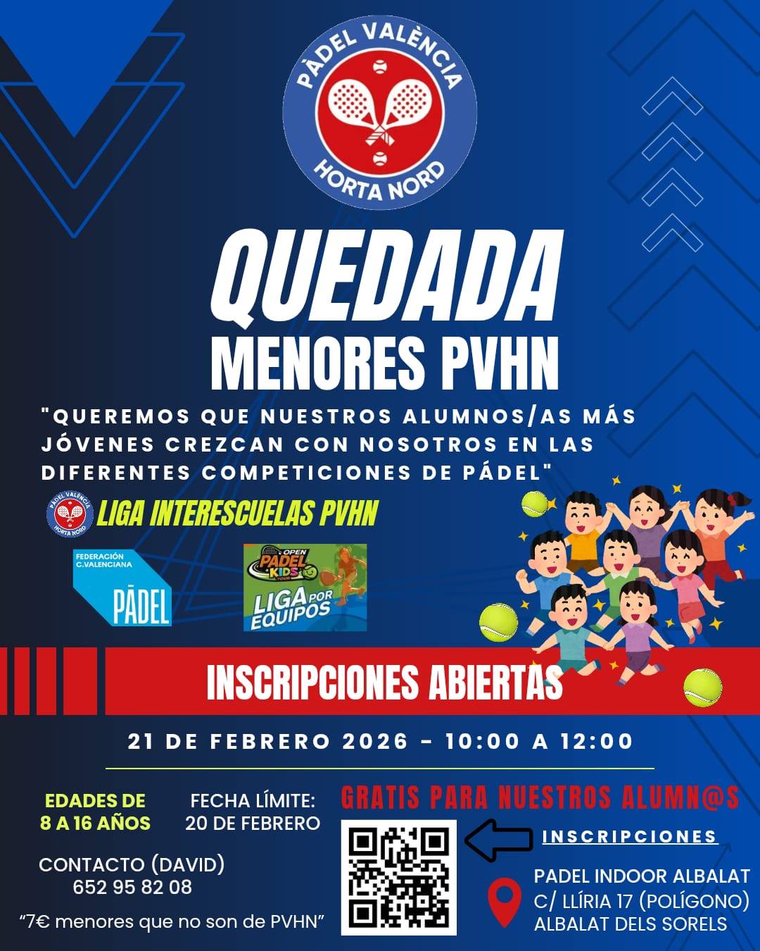 La inscripción es gratuita para nuestros alumn@s de las diferentes escuelas de PVHN. Si alguno otro niñ@ fuera de la escuela se quiere apuntar, sería 7€/niño.